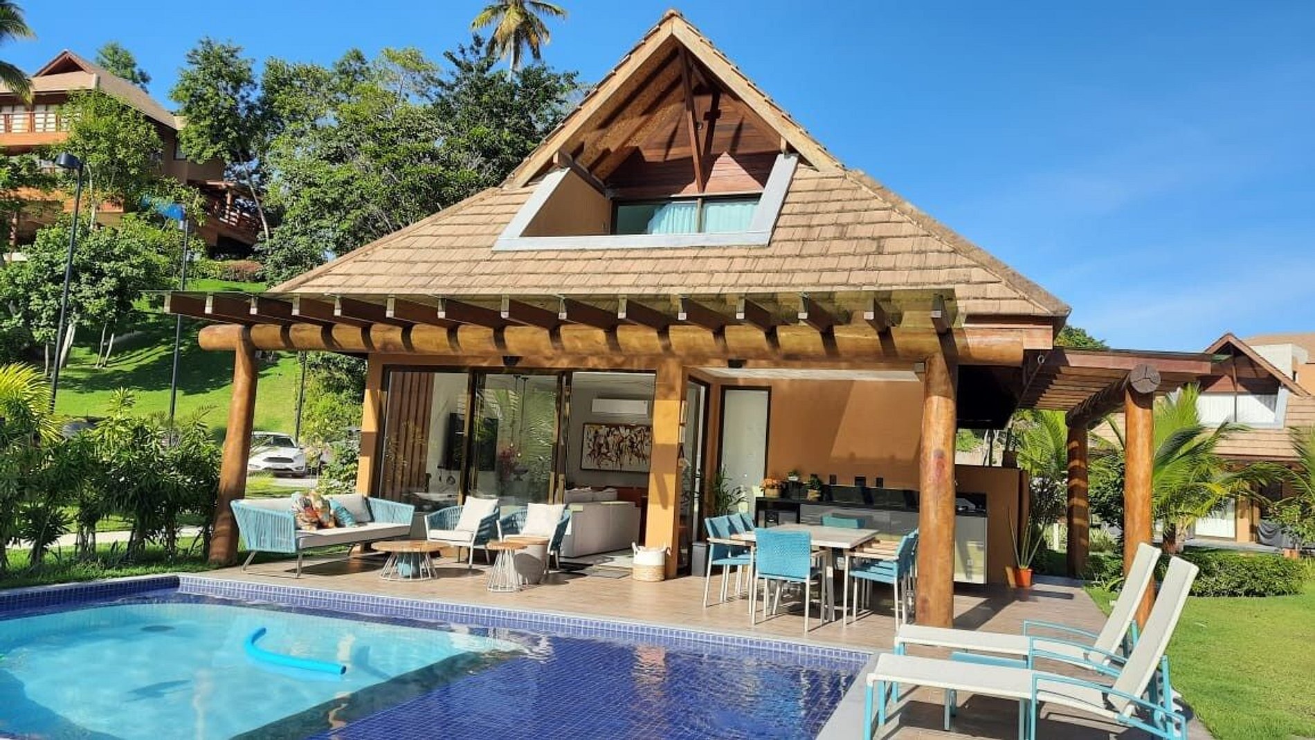 The condominium at Praia dos Carneiros is a true oasis of peace. With infrastructure planned to provide comfort and security, it offers residences that integrate with the local nature. The houses, often surrounded by tropical gardens, allow residents to enjoy stunning views of coconut trees and the sea from their balconies and windows.