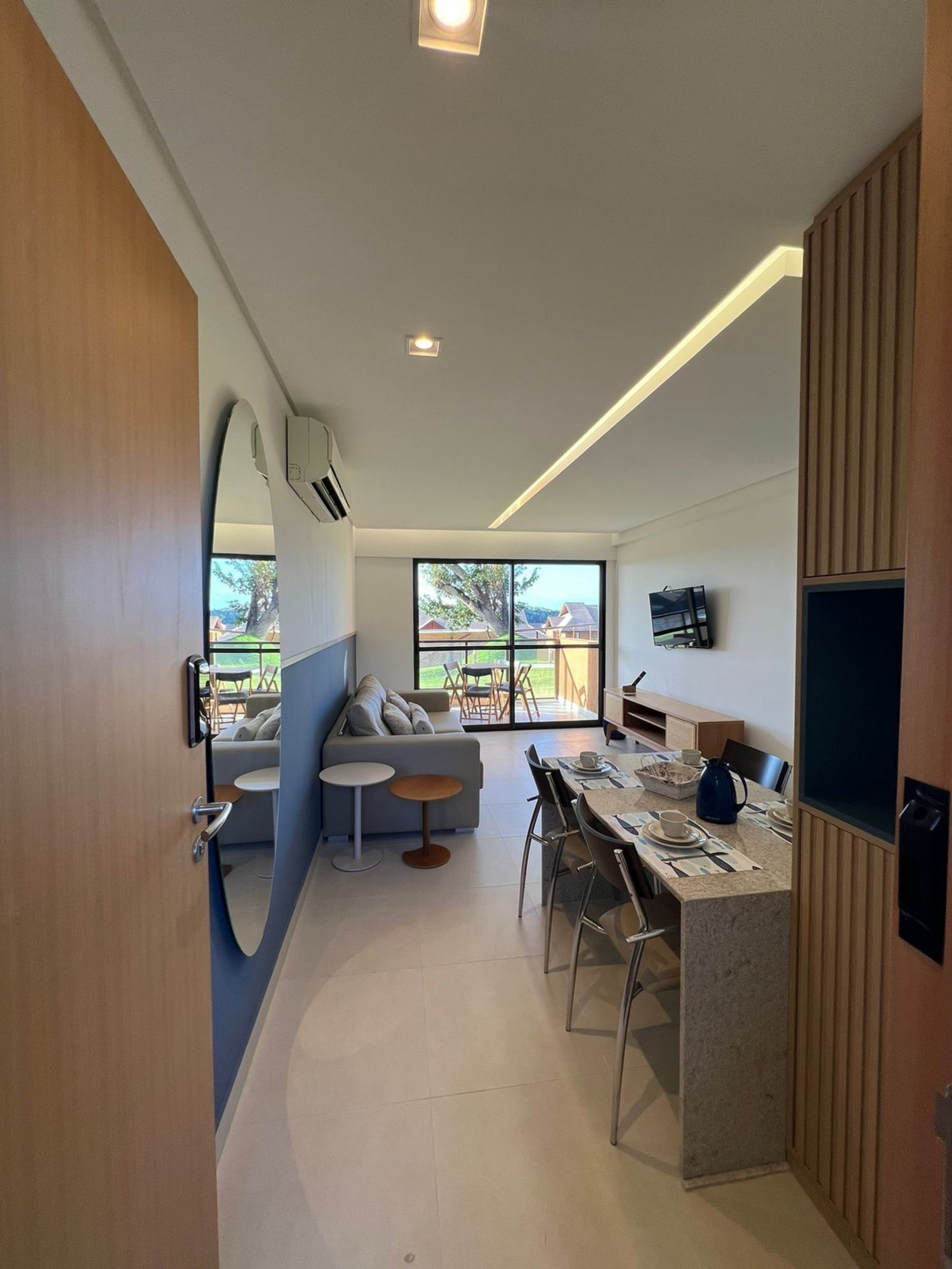 Todas as unidades estão equipadas com televisões, acesso à internet e uma variedade de eletrodomésticos, garantindo uma estadia completa e confortável para nossos hóspedes. Além das comodidades oferecidas nos flats, os visitantes têm acesso total à infraestrutura do Eco Resort Praia dos Carneiros, que inclui uma ampla gama de opções de lazer, como restaurante, loja de conveniência e academia.