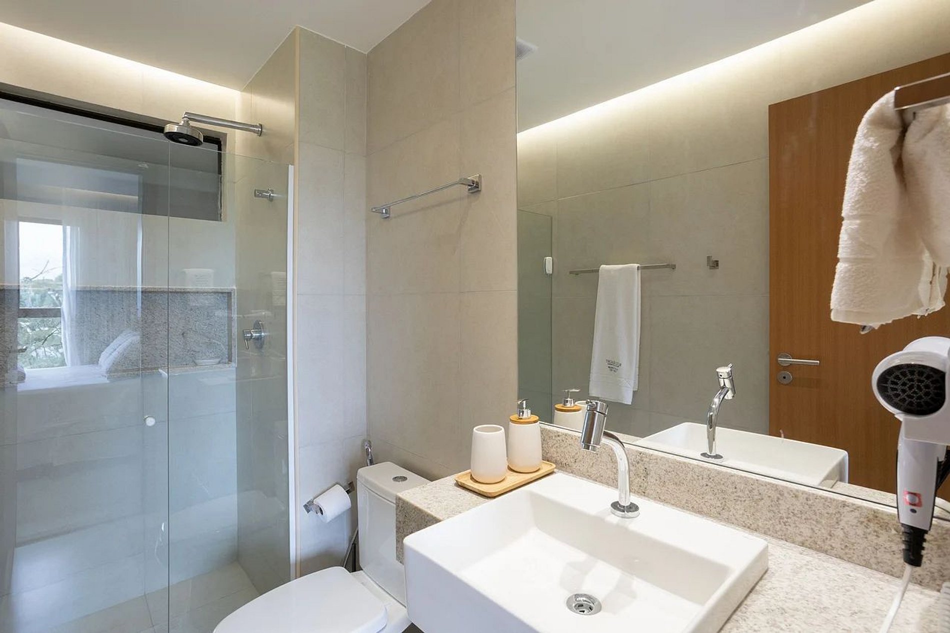 Todas as unidades estão equipadas com televisões, acesso à internet e uma variedade de eletrodomésticos, garantindo uma estadia completa e confortável para nossos hóspedes. Além das comodidades oferecidas nos flats, os visitantes têm acesso total à infraestrutura do Eco Resort Praia dos Carneiros, que inclui uma ampla gama de opções de lazer, como restaurante, loja de conveniência e academia.