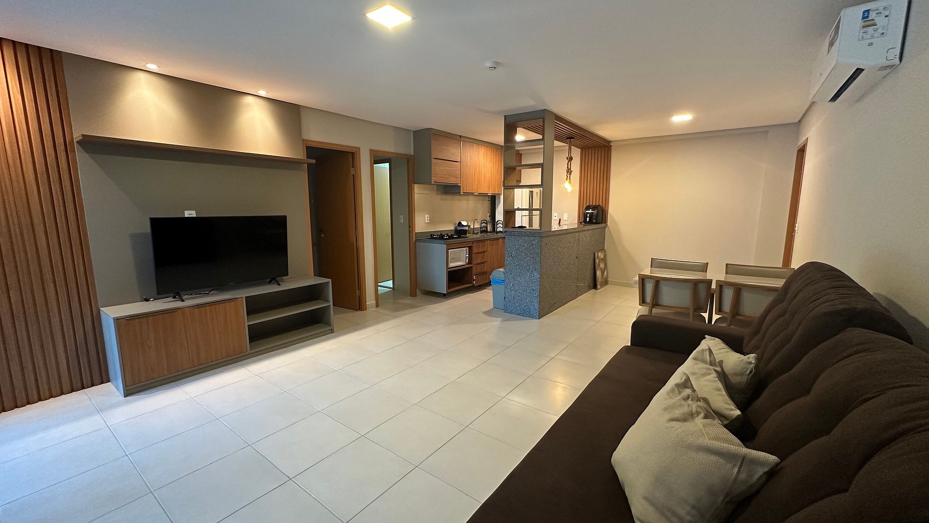 Área de estar com sofá/cadeira